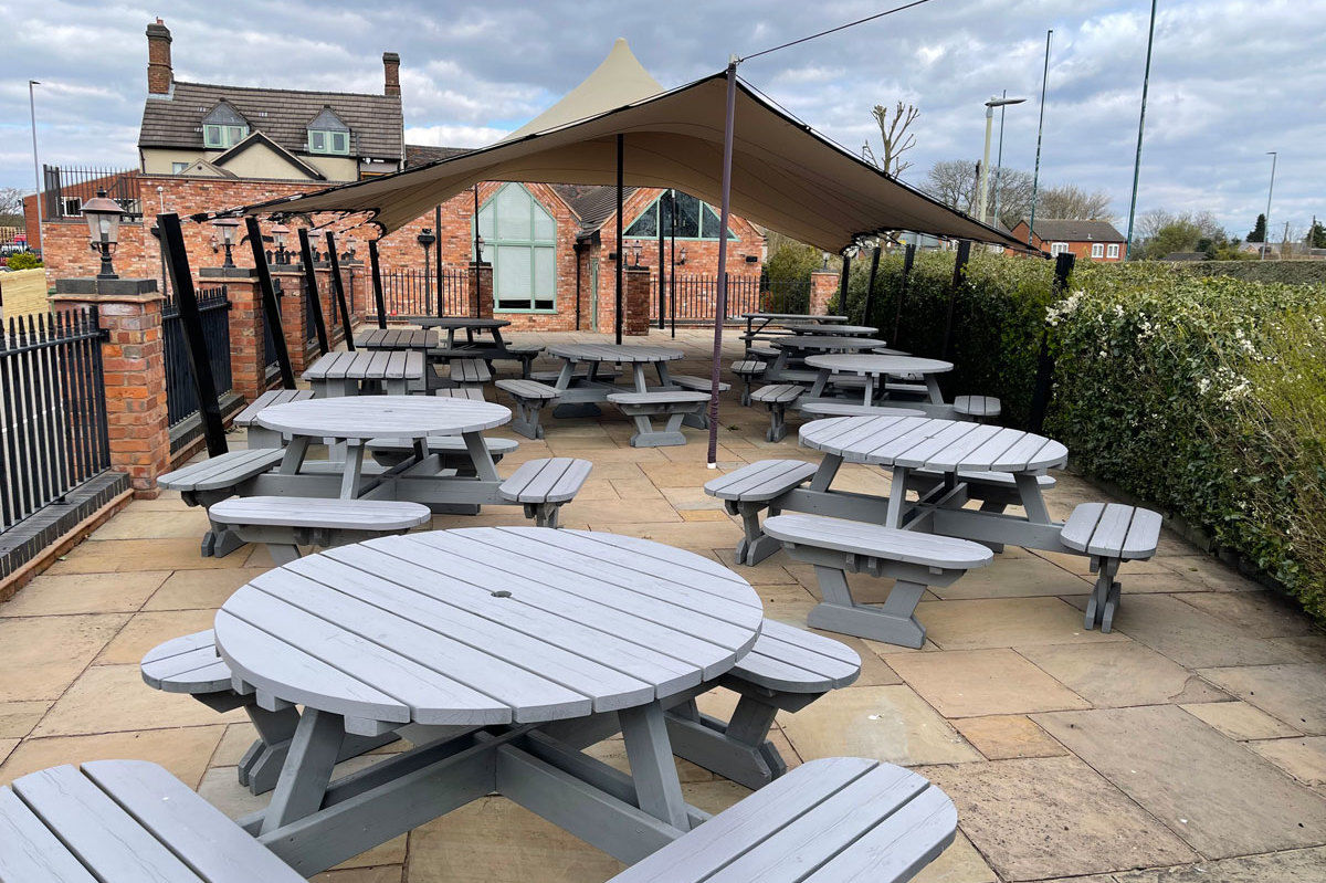 Enjoy a meal or a drink on our spacious and sunny patio.
